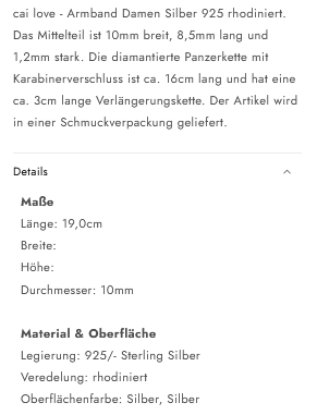 cai Armband Flachpanzerkette 925/- Sterling Silber rhodiniert 19,0cm ohne Stein
