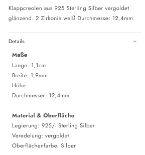 cai Klappcreolen 925/- Sterling Silber vergoldet 1,1cm Zirkonia